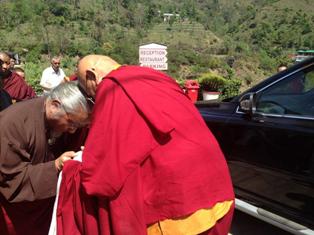 ![]() The Dalai Lama accepting Drikung Ontrul Rinpoche's