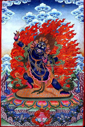 An empowerment of three wrathful deities in one Hayagriva, Garuda and Vajrapani. This practice is from the Mindroling lineage and is the same as Takhyung Barwa.