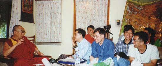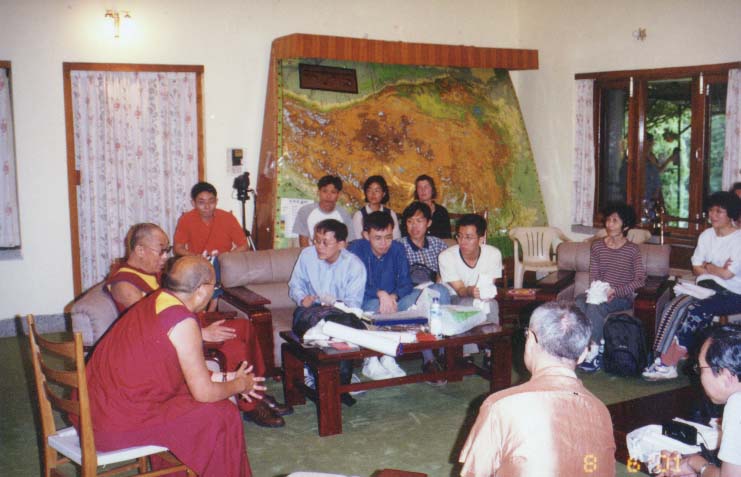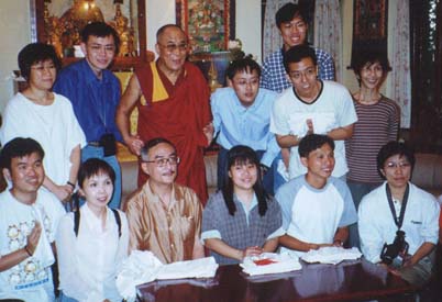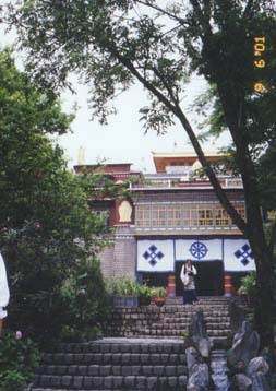 ![]() Basking in joyful bliss in front of the Gyuto Tantric College Tantric College of Upper Lhasa, after public audience and blessings from HH the 17th Karmapa |