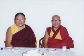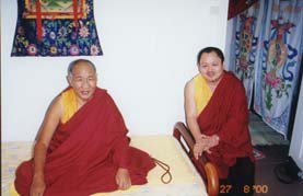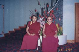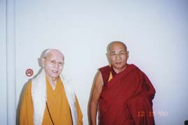 ![]() HH the Ganden Tri Rinpoche with Venerable Master Long-Gen, the President of the Buddhist Federation, Singapore, most respected scholar, practitioner and pillar of Buddhism. [ August, 2000 ] |