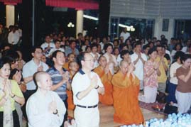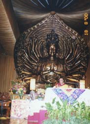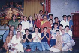 ![]() Ven Fa Zhao and his students offering prostrations and a thousand kindnesses and hospitality to HH the Ganden Tri Rinpoche during the Medicine Buddha Initiation at Venerable's splendidly magnificent temple, the Golden Pagoda in Tampines, Singapore. [ August, 2000 ] |